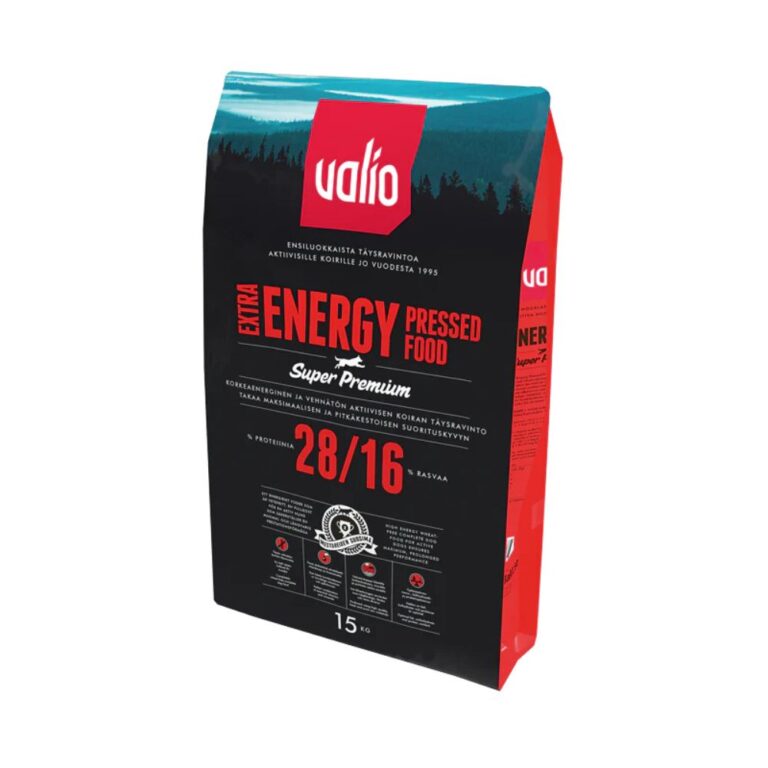 Valio Puriste Extra Energy on erityisesti aktiivisten, suurten ja keskisuurten koirien ravitsemuksellisiin tarpeisiin kehitetty laadukas täysravinto. Korkean proteiini- ja rasvapitoisuuden ansiosta koira saa ruoasta nopeasti runsaan määrän energiaa hyödynnettäväkseen. Valio Puriste Extra Energy sopiikin erinomaisesti mm. harrastus- ja työkoirille, jotka tarvitsevat paljon energiaa pitkäkestoisiin sekä fyysisesti vaativiin suorituksiin. Puristeruoka sopii hyvin herkillekin koirille, sillä se on hellä vatsalle eikä aiheuta turvotusta.