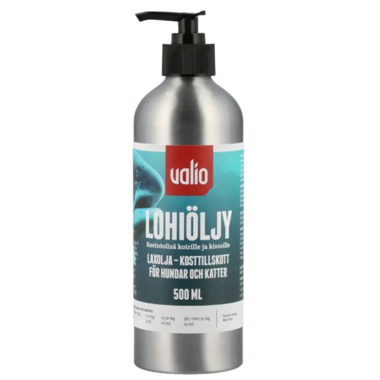 Lohiöljy on huippusuosittu lisäravinne lemmikille. Lohiöljyllä on useita terveyshyötyjä: se auttaa ylläpitämään tervettä ihoa, turkkia ja polkuanturoita sekä antaa lemmikille energiaa. Lohiöljyn sisältää Omega-3 ja -6-rasvahappoja, joilla voi olla positiivisia vaikutuksia lemmikin sydän- ja verenkiertoelimistön sekä aivojen toiminnalle. Luonnollinen ja tuore Valio-lohiöljy on valmistettu norjalaisesta lohesta. Öljyn säilömiseen on käytetty luonnollisia tokoferoleja, jotka varmistavat tuoreuden ja ravintoarvot. Lohiöljyssä on mieto maku ja tuoksu, minkä ansiosta se maistuu lemmikillle päivittäisen aterian yhteydessä.