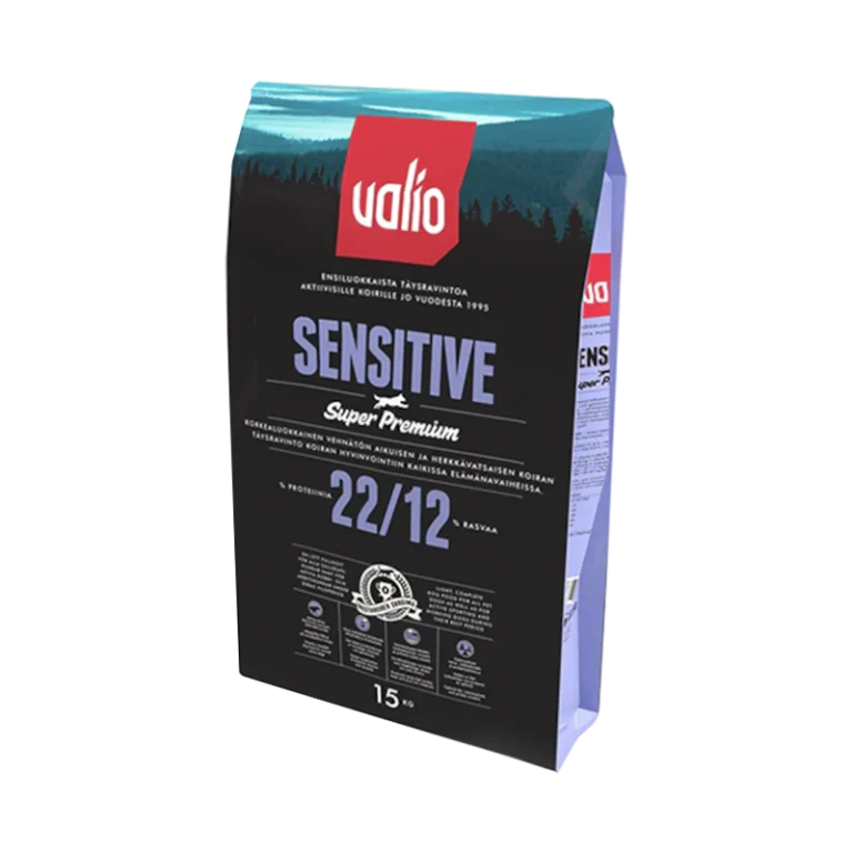 Valio Sensitive on erityisesti herkkävatsaisille sekä ruoka-aineyliherkkyyksistä kärsiville koirille kehitetty täysravinto. Vähärasvainen ruoka soveltuu hyvin myös ylipainoisille sekä ikääntyville koirille. Optimaalinen proteiini-, rasva- ja hiilihydraattipitoisuus sekä täydellinen vitamiinien ja hivenaineiden yhdistelmä takaavat, että koira saa ruoasta kaiken tarvitsemansa.
