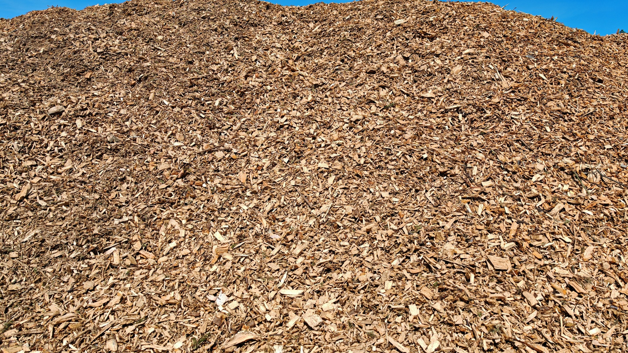 Kokopuuhake tehty karsimattomasta kokopuusta. Haketta tulee runkopuusta, oksista ja neulasista.